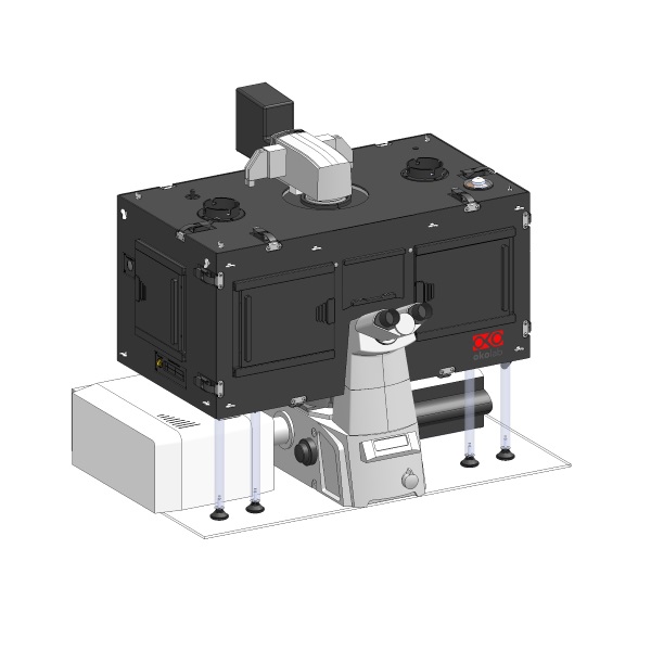 In this page we report drawings of the enclosure for three configurations, based on the microscope Nikon TI.